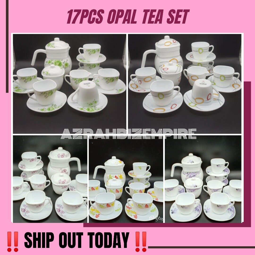 Hot 17pcs Opal Square Tea Set Florea Arc Opal 17pc Set Teko Petak Dan Cawan Piring Kaca Opal Bekas Gula Susu Lazada